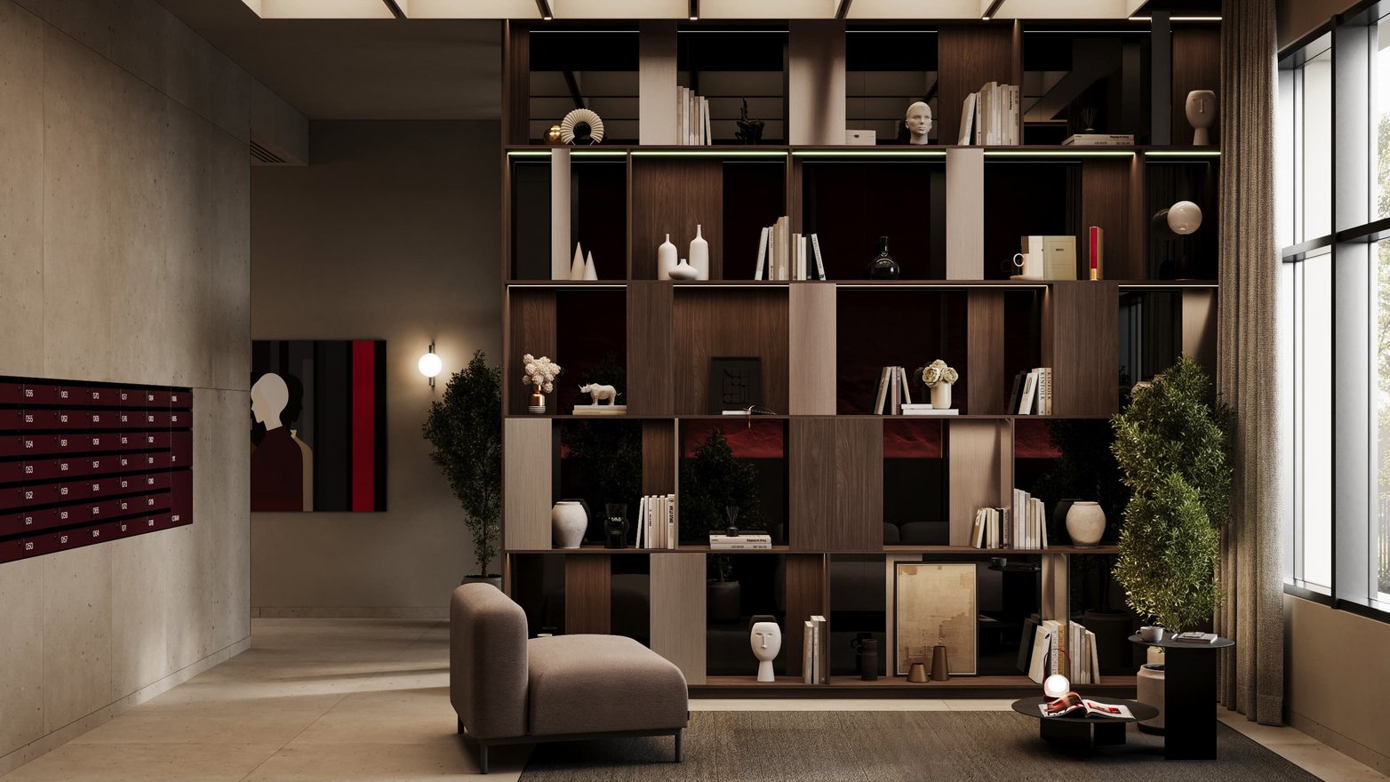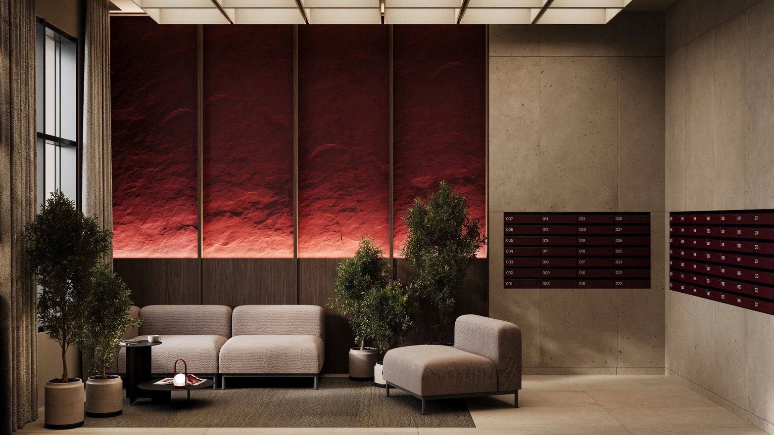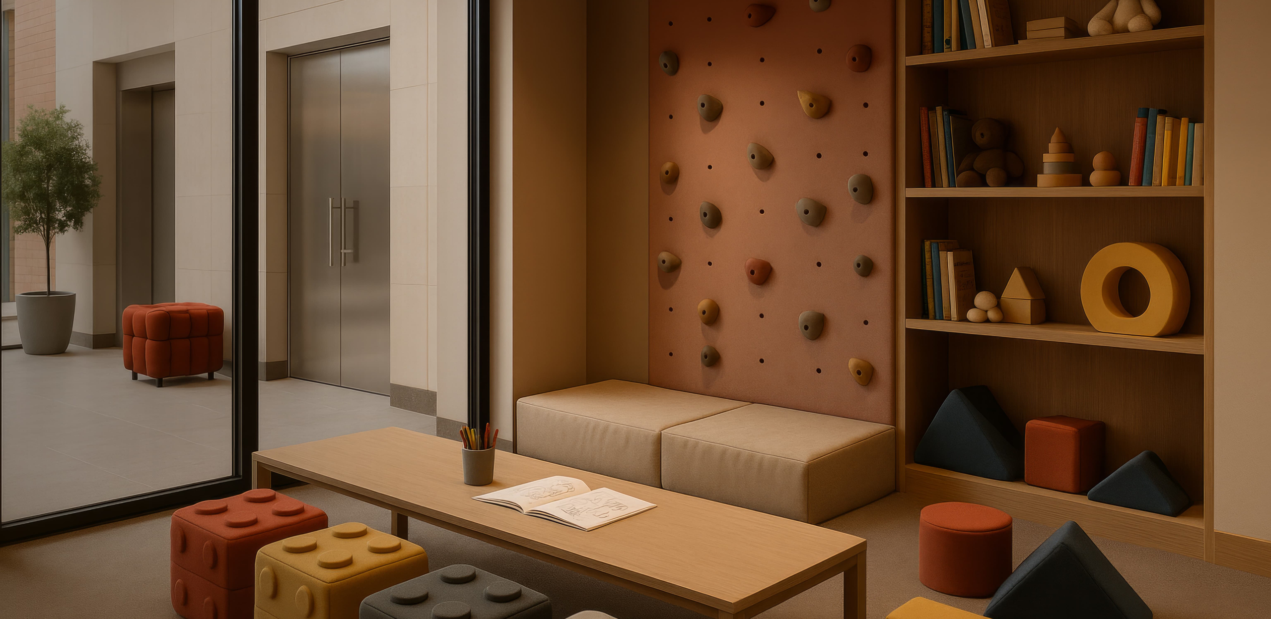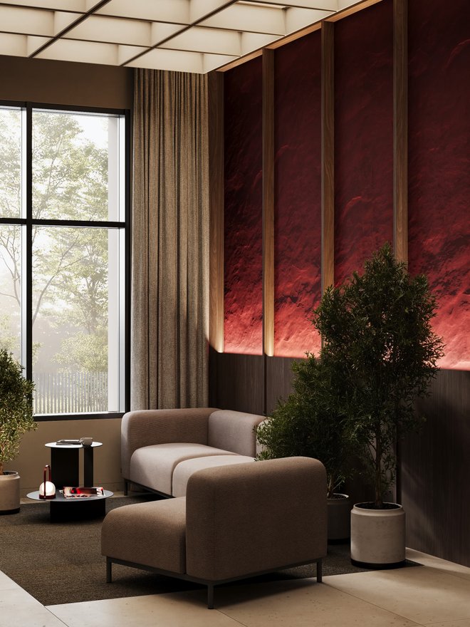 Холлы встречают простором и атмосферой отеля. Увеличенные потолки до 3,5 м. Светопрозрачные входные группы. Мягкие зоны ожидания. В некоторых подъездах — выделенное фойе, где будет расширенная мягкая зона или небольшой коворкинг.