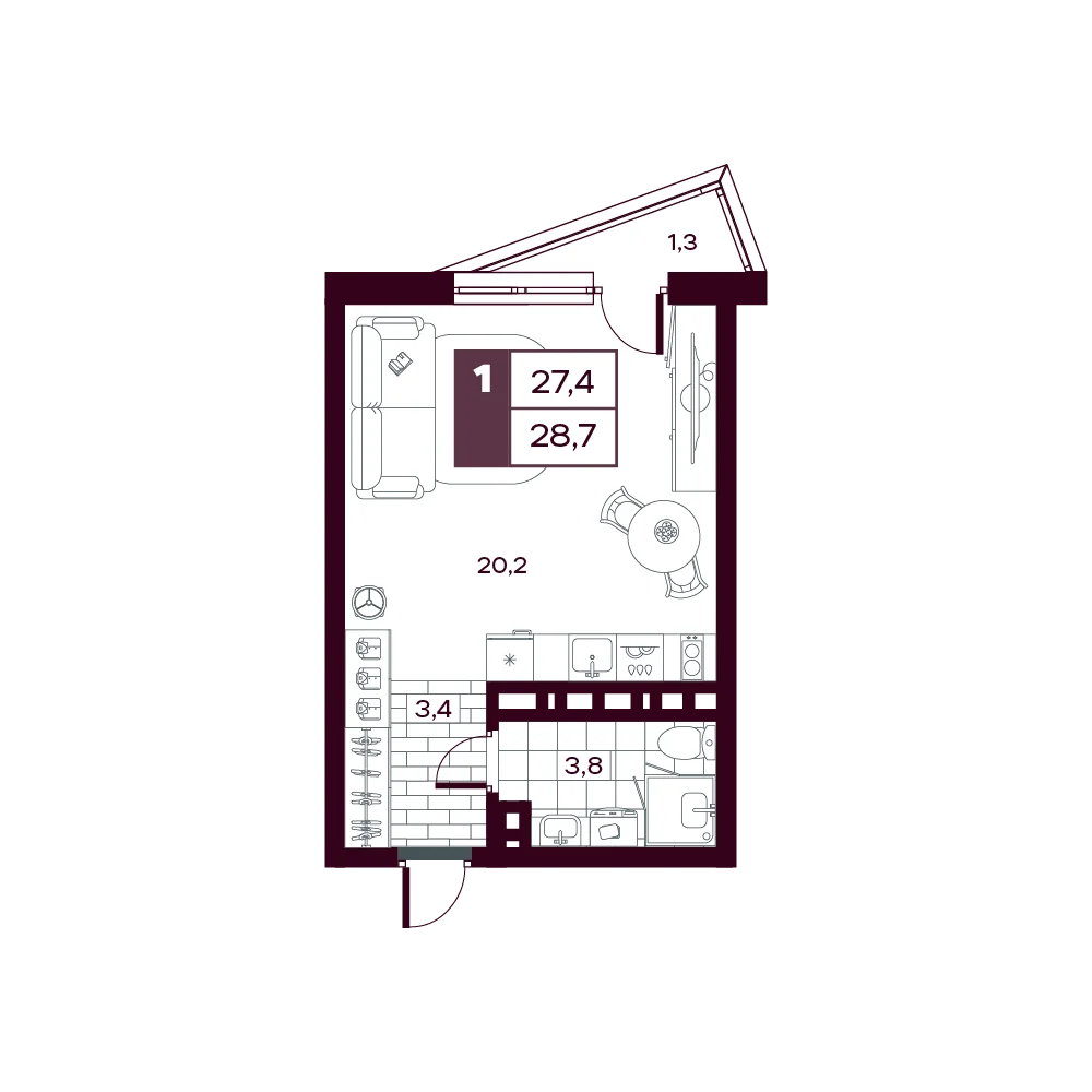 - № 229MAXMAX 1 очередь (квартиры) - 1.4, Секция 1, Этаж 8