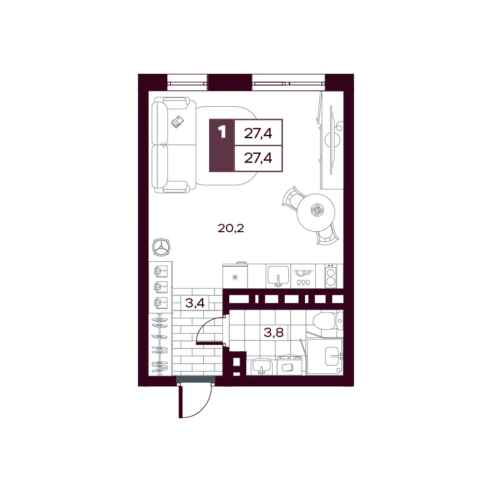- № 220MAXMAX 1 очередь (квартиры) - 1.4, Секция 1, Этаж 7