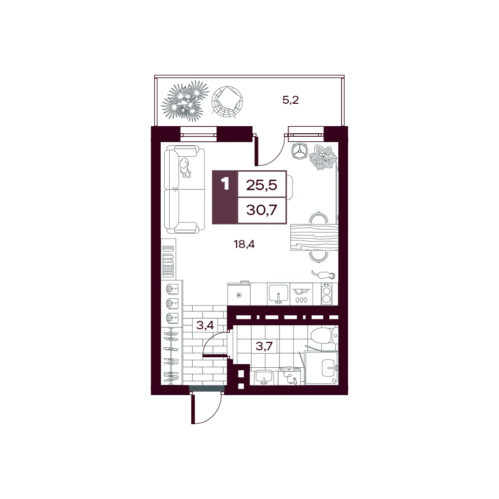 - № 202MAXMAX 1 очередь (квартиры) - 1.4, Секция 1, Этаж 5